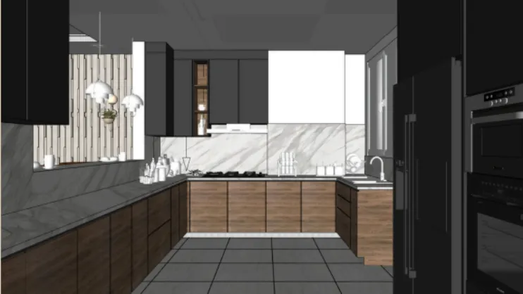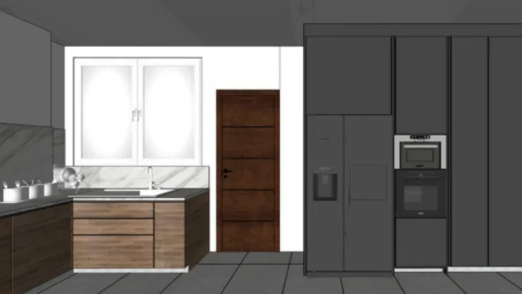 The duplex comes with a fully fitted modern kitchen and an adjoining pantry for extra storage, ideal for families that value space and functionality.